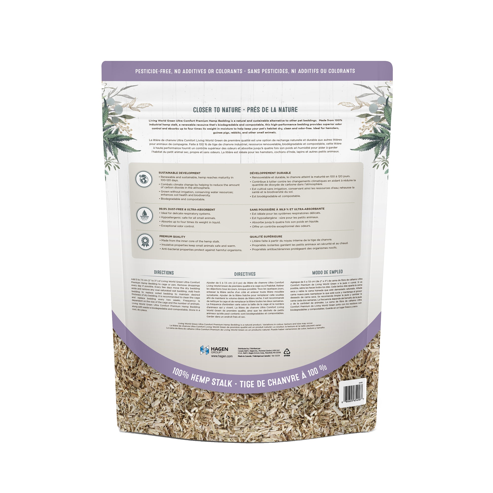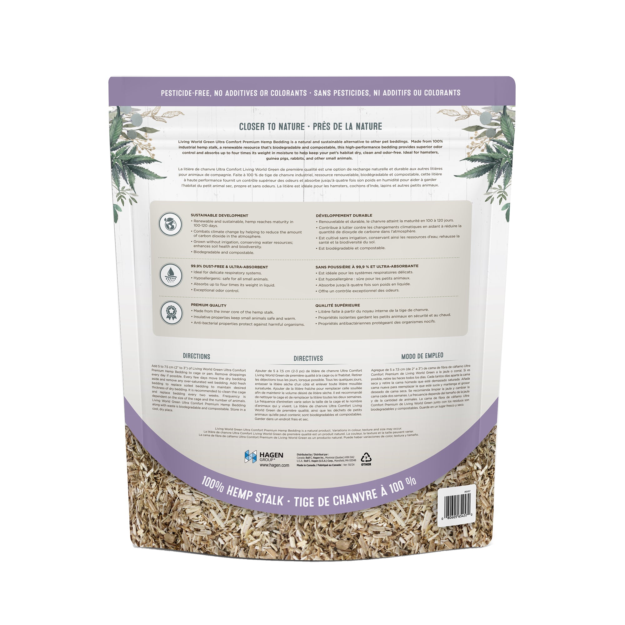 Living World Green Ultra Comfort Premium Hemp Bedding is a natural and sustainable small animal bedding that is both highly absorbent and odor-controlling. Made in Canada from 100% industrial hemp ...