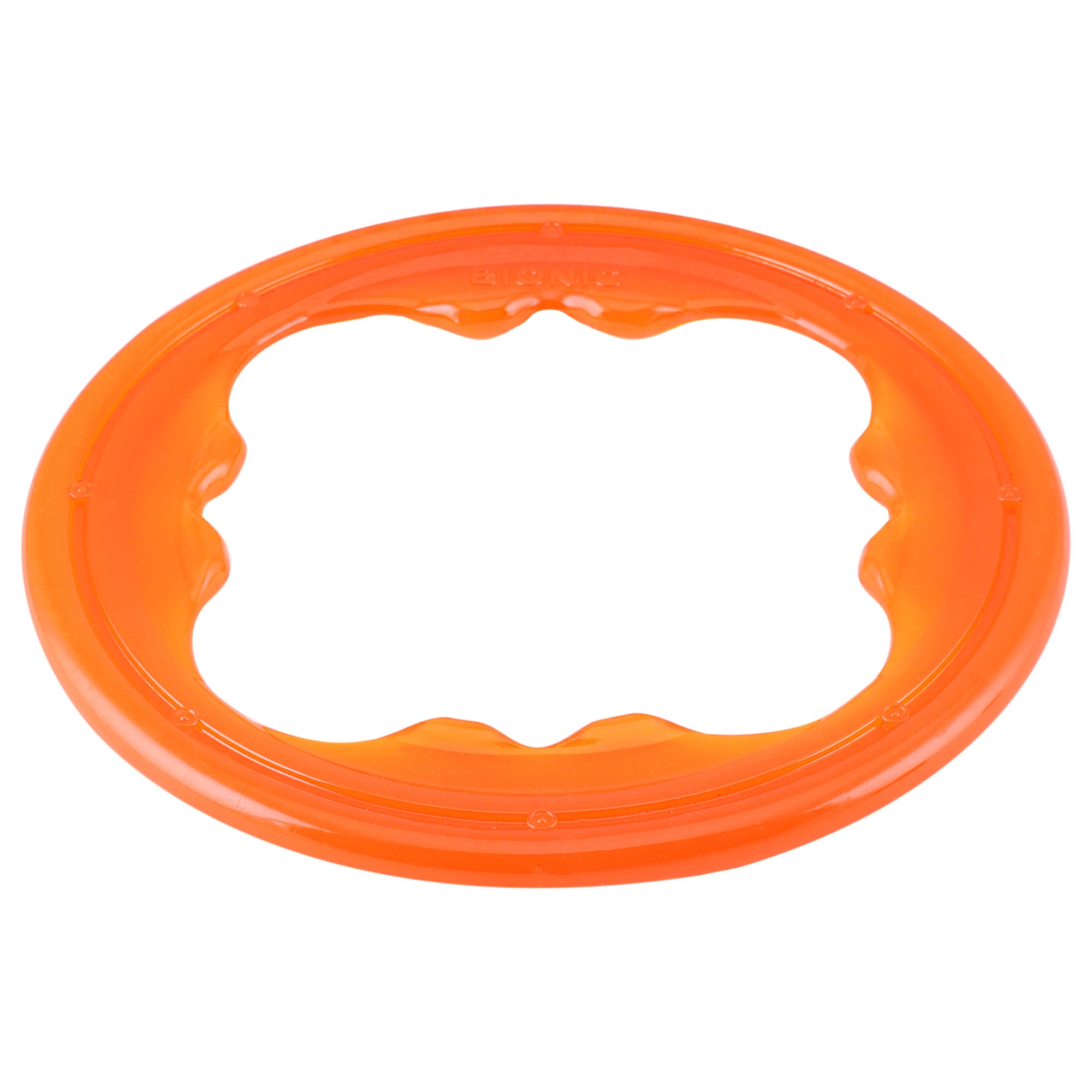 The BIONIC Toss-N-Tug Turbo features ergonomic hand grips and floats in water, making it perfect for fetching and playing anywhere. (1) It stands up to hours of tossing and tugging for increased engagement. (2) Its lightweight design makes it easy to toss for exciting games of fetch. (3) It rolls effortlessly for speedy ground chasing, providing three times the tail-wagging fun.