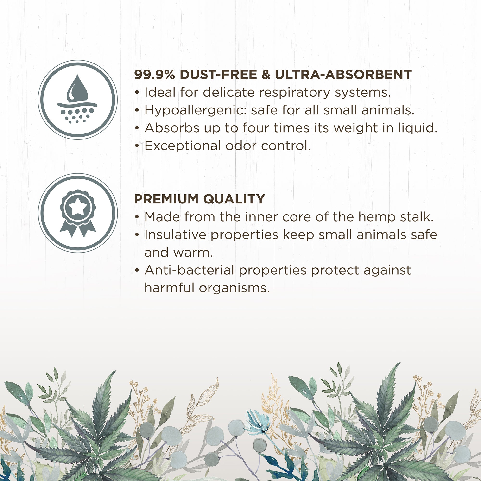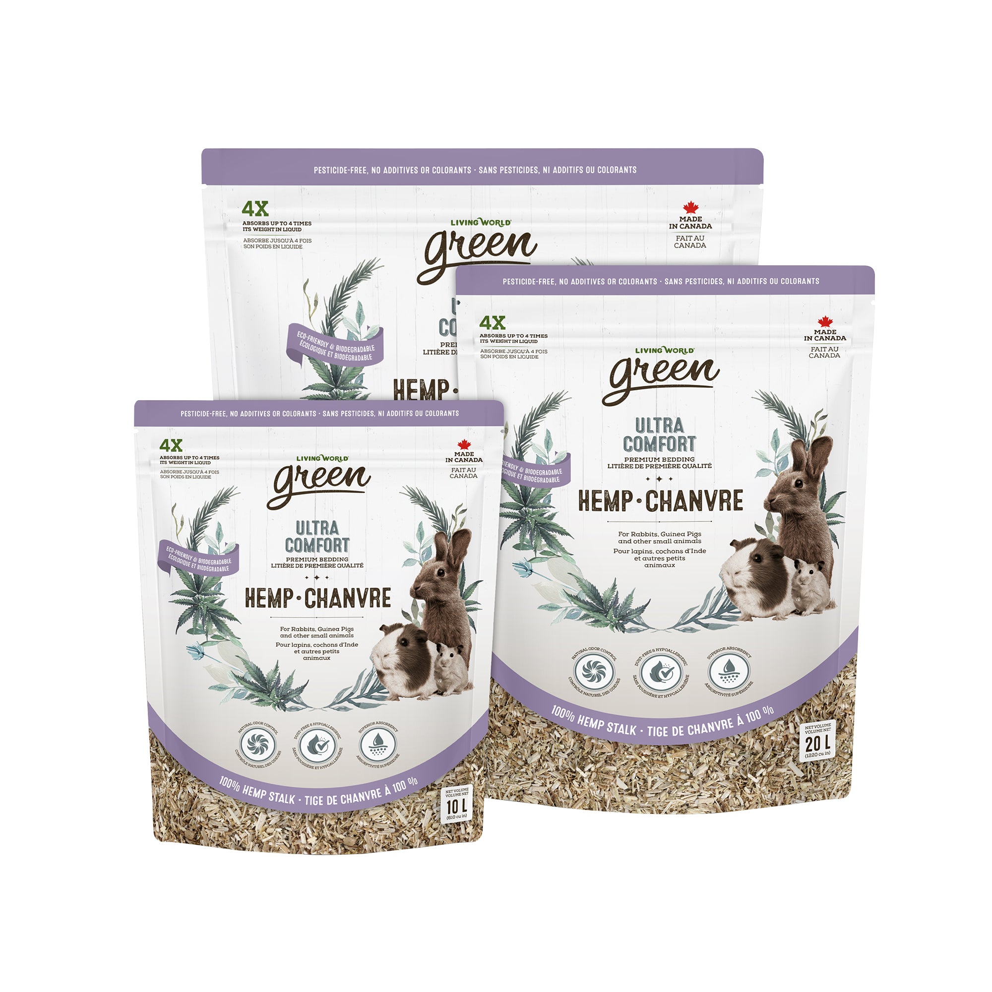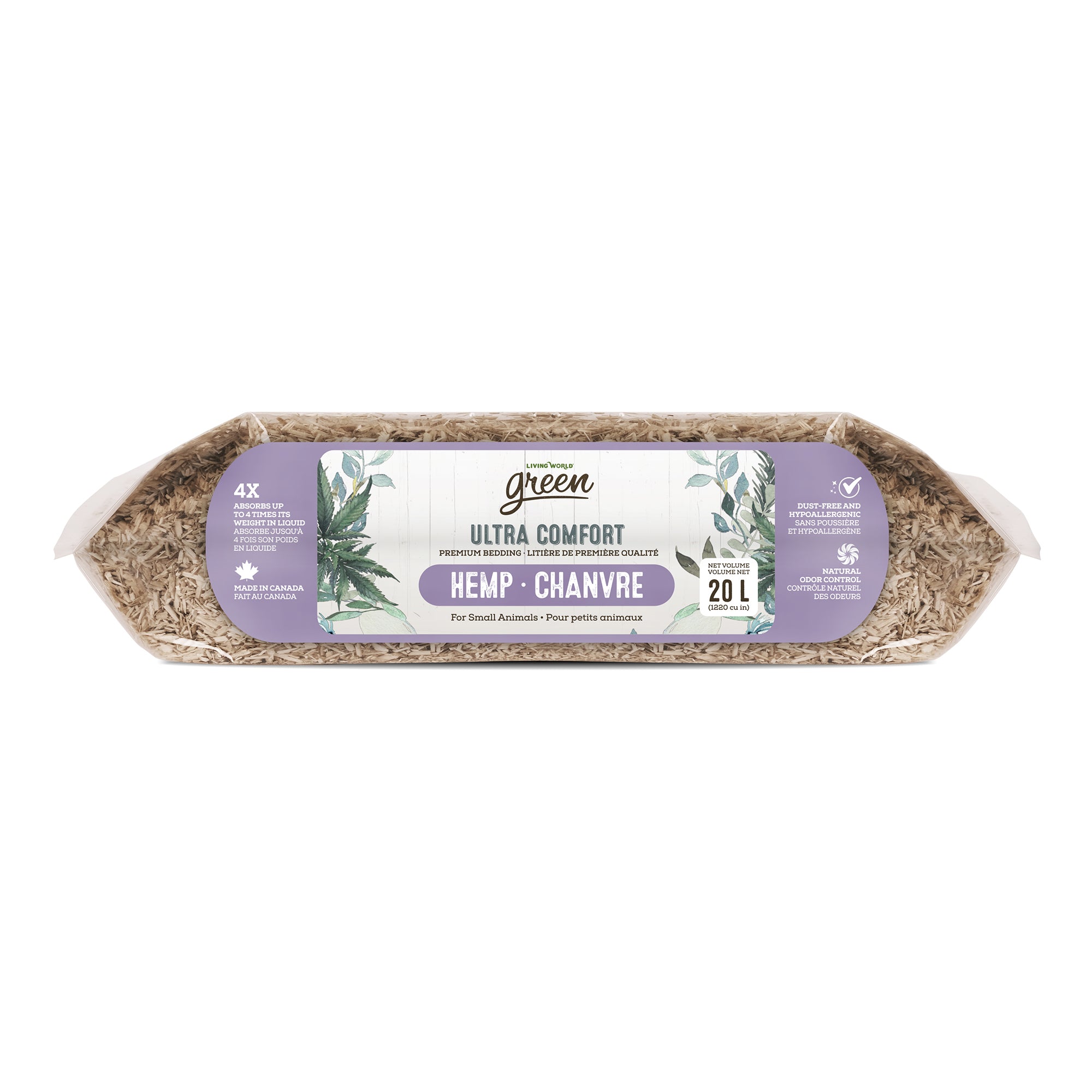 Living World Green Ultra Comfort Premium Hemp Bedding is a natural and sustainable small animal bedding that is both highly absorbent and odor-controlling. Made in Canada from 100% industrial hemp stalk, this eco-friendly choice is biodegradable, compostable, and renewable, making it an excellent option for environmentally conscious pet owners. This premium bedding is 99.9% dust-free and hypoallergenic, making it an ideal choice for pets and pet parents alike.