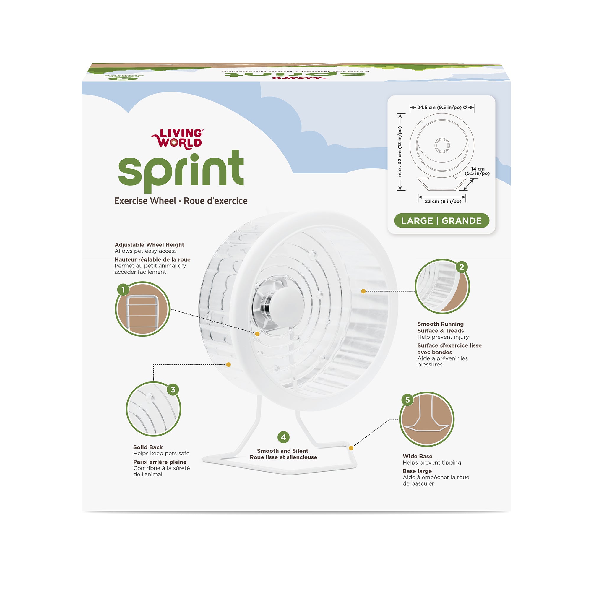 The solid back design offers security and comfort, preventing tails or tiny feet from getting caught, while the raised treads provide enhanced grip and stability as your pet runs. The wide, anti-tip base ensures stability, preventing wobbling or tipping over during use. Featuring an adjustable height, the wheel can be customized to suit your pet’s size, ensuring easy access and a comfortable running experience. Ideal for promoting physical activity and mental stimulation, the Living World Sprint Exercise Wheel helps prevent boredom and supports overall well-being, making it an essential addition to any small pet habitat.